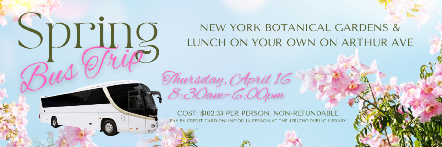 The Library makes no warranties and/or representations concerning virtual and in-person programs. Your decision to participate in the programs is an express consent on your part to waive any and all claims against the Library which may result from said participation and hereby release and discharge the Jericho Public Library from any and all liabilities.