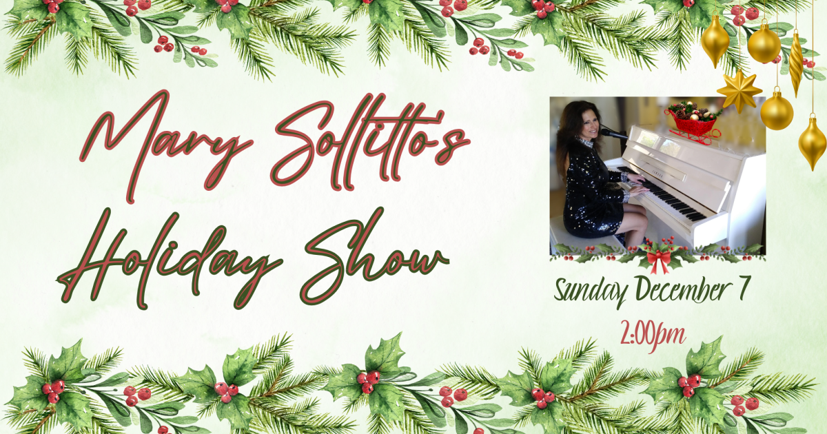 Mary Sollitto of Harmony Music and Entertainment will be back to the library! Come to the Cabaret! Mary's showstopping hits are always a crowd pleaser and with this performance she'll offer her renditions of some holiday songs that you've grown to love and enjoy!