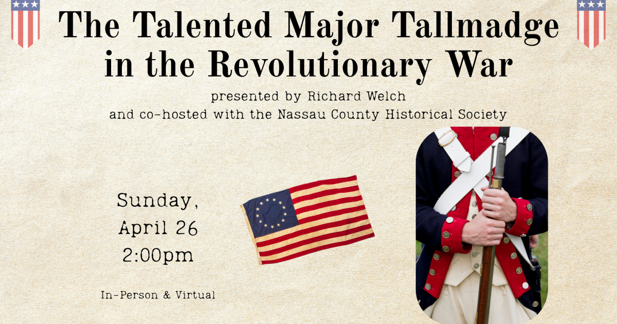 This PowerPoint presentation explores the Revolutionary War career of Setauket native Benjamin Tallmadge—dragoon commander, intelligence officer, and leader of daring raids on British outposts. He fought in key battles and ran George Washington’s most active espionage network, the Culper Spy Ring, helping foil the Arnold–André plot to betray West Point. The program concludes with an overview of his postwar career as a businessman and Congressman.